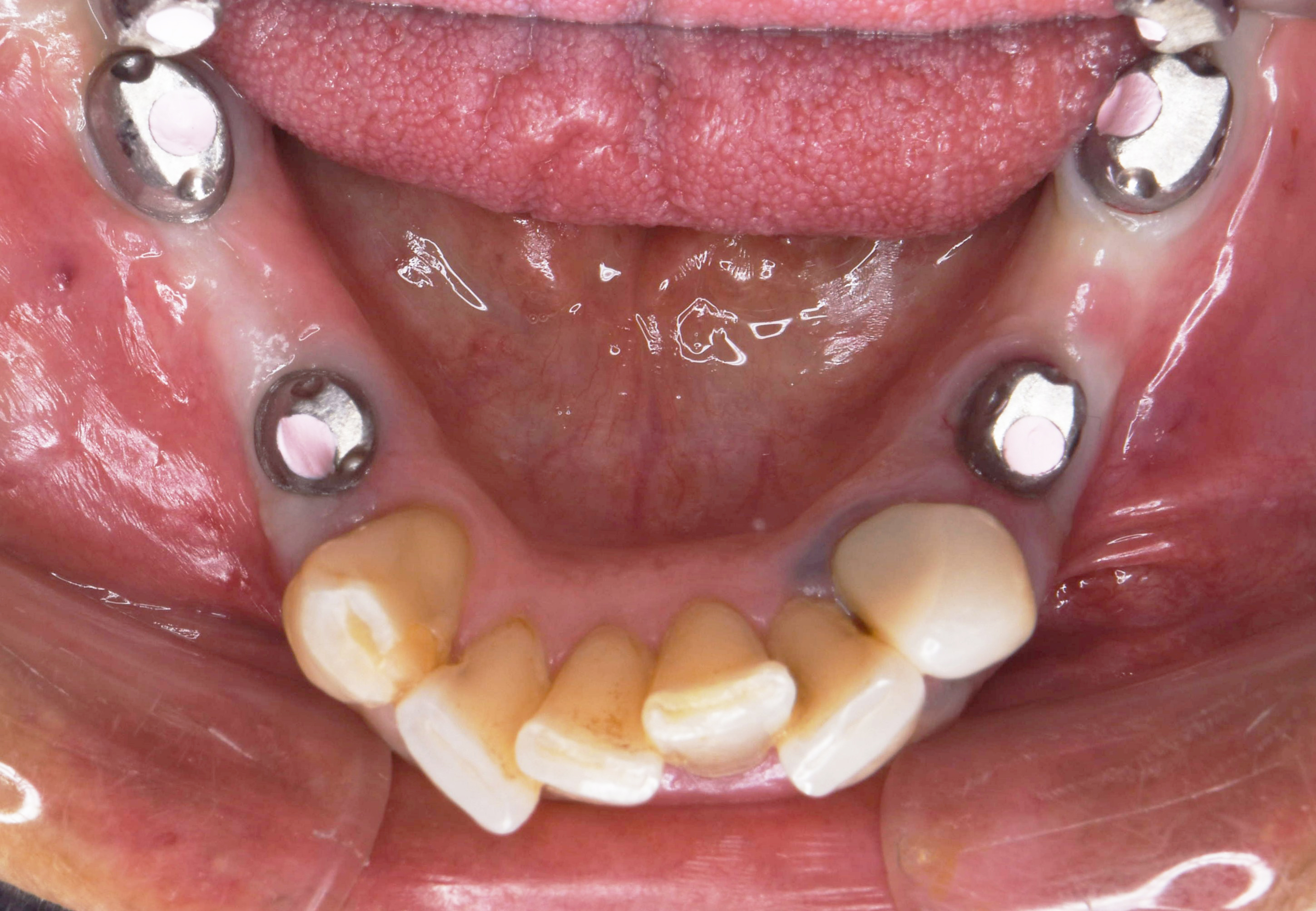 上顎前歯部は、ほとんどの方で歯肉や骨が非常に薄く、歯を抜くと歯肉や骨が極めて早期に委縮してしまいます。